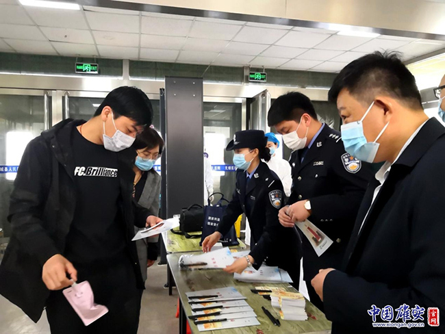 4月15日上午,河北雄安新区国家安全局工作人员把宣传品送到群众手中。中国雄安官网发