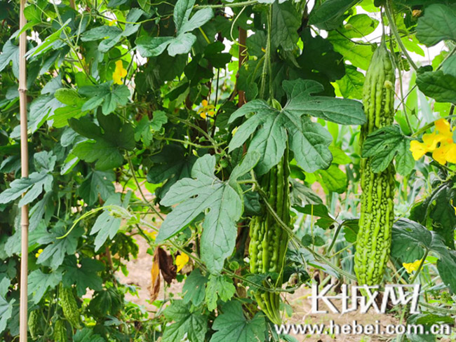 吴永启种植的苦瓜翠绿饱满。